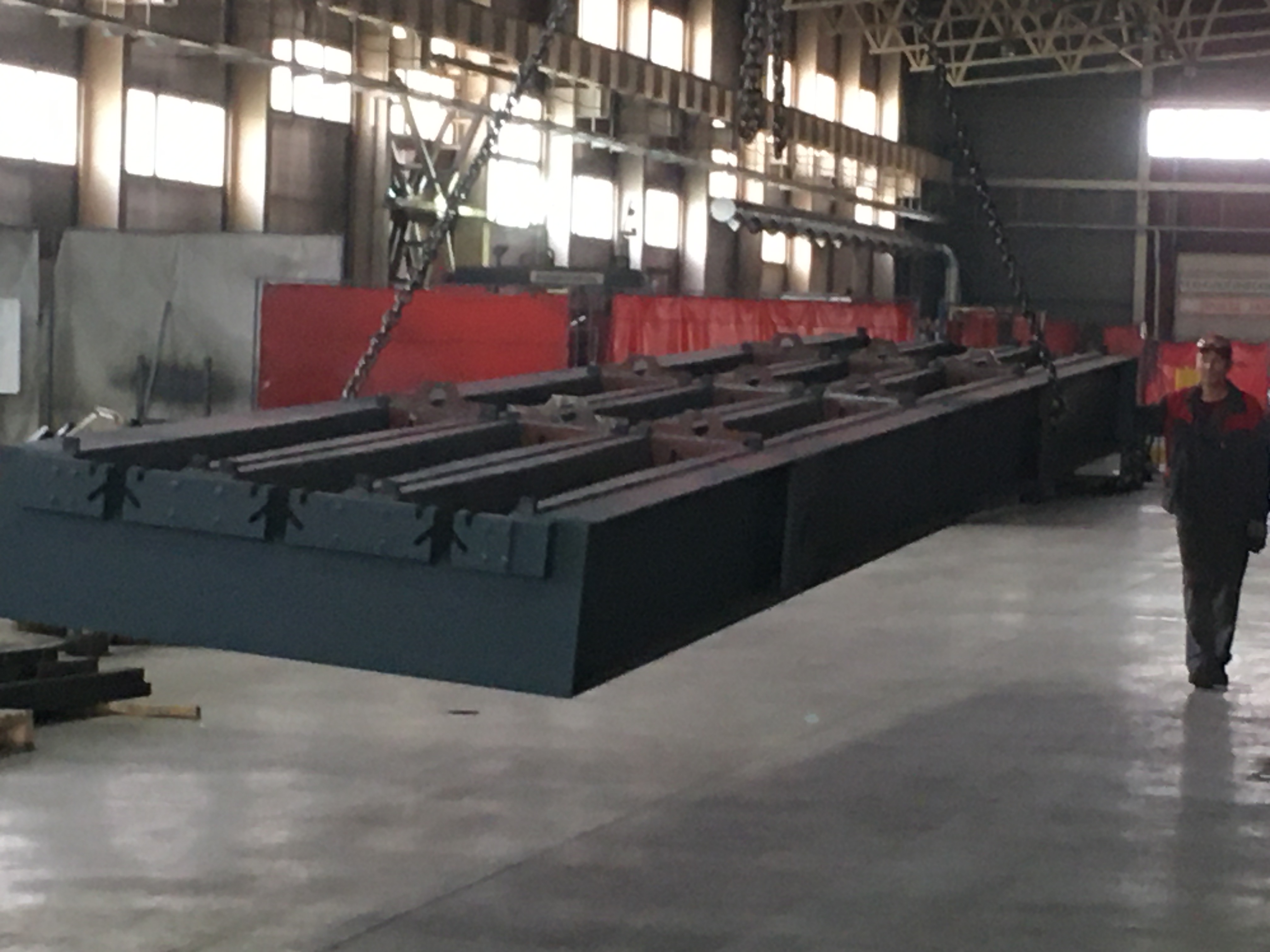 Кран козловой контейнерный г/п 50 т., КС50-42 Основные предлагаемые технические характеристики включают: Рабочий уровень стальной конструкции: A3 Рабочий уровень механизма: M4 Пролет: 42м Номинальная грузоподъемность: 50 т (основной крюк)/10 т (вспомогательный крюк) Высота подъема осно… Читать дальшевного крюка: 14,5 м (основной крюк)/16,7 м (вспомогательный крюк) Скорость подъема главного крюка при 50 т: 0,3~3 м/мин (большая нагрузка) Грузоподъемность основного крюка: 2*15 кВт. Модель вспомогательного крюка: МД1 10т-18м. Скорость подъема вспомогательного крюка при 10 т: 0,7-7 м/мин. Мощность подъема вспомогательного крюка: 13 кВт. Скорость движения тележки: 0~8м/мин. Мощность перемещения тележки: 13 кВт, преобразована из CD1 10 т. Скорость движения крана: 2,5~25 м/мин (тяжелая нагрузка) Давление колеса крана/диаметр колеса: 121 кН/∅ 300 мм. Количество крановых колес: 4*4 Максимальный уклон: ±2% Температура окружающей среды: от -20℃ до +40℃. Рабочее место: на открытом воздухе Трек: P43, предоставлен заказчиком Источник питания: барабан с силовым кабелем длиной 100 м. Общий вес: примерно 79,6 т. Режим работы: беспроводной пульт + кабина Режим торможения: Электрический гидравлический тормоз колес. Защита от ветра: ветровой анкер + механический рельсовый зажим.
