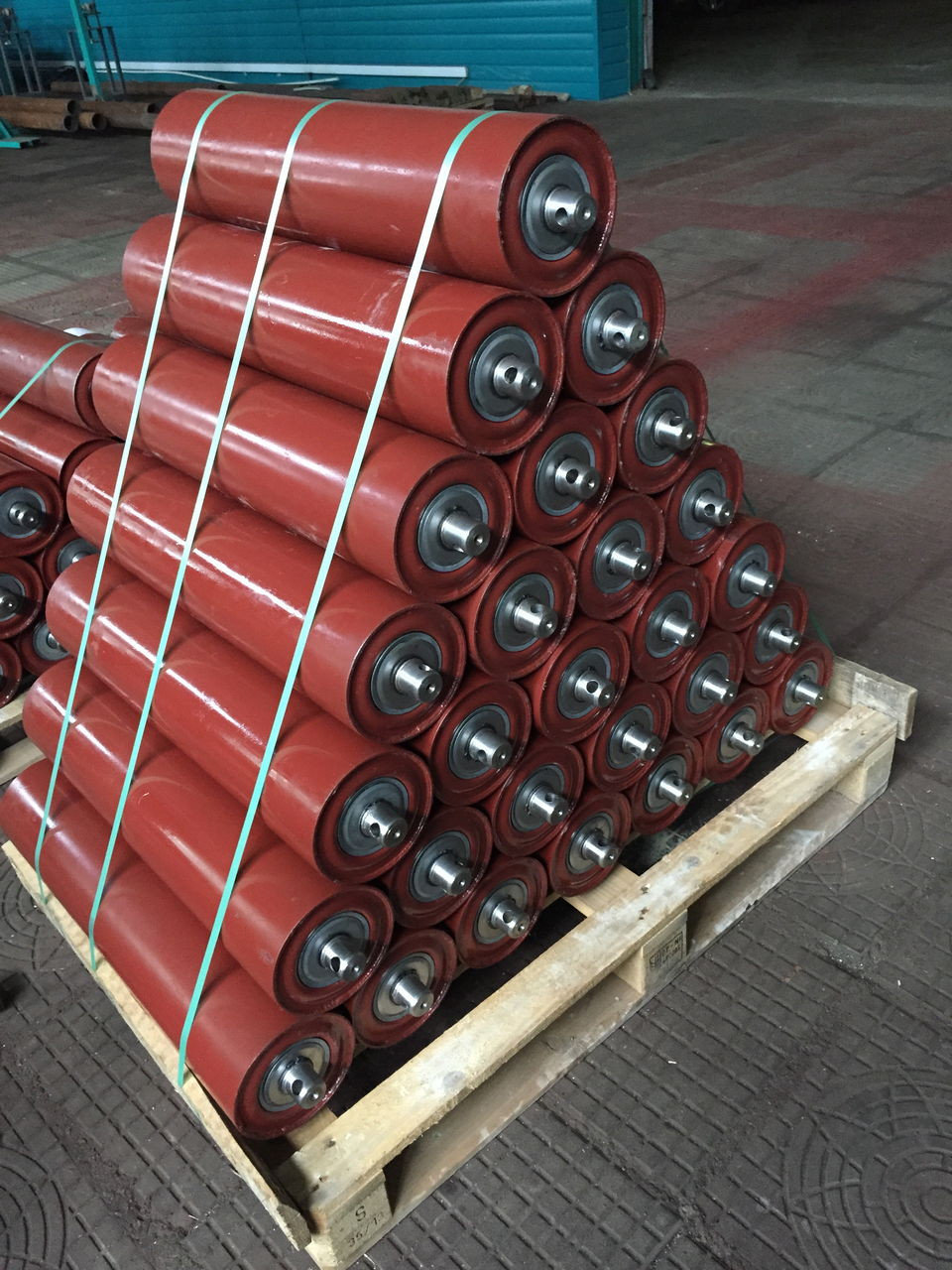 Барабаны приводные: от Ø 250 мм до Ø1600 мм гладкие и футерованные с подшипниками 3608 …. 3640 и длиной обечайки соответственно техническому заданию заказчика. Футеровка приводных барабанов позволяет максимально увеличить коэффициент сцепления между барабанами, роликами и конвейерной лентой, исключив трение скольжения; уменьшить натяжение ленты и соответственно ее износ; защитить от коррозии и налипания транспортируемого материала; упростить регулировку прямолинейного хода конвейерной ленты.