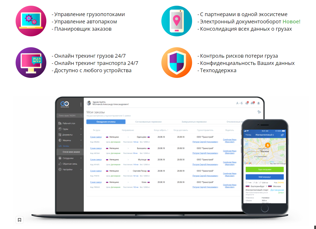 Приглашаем Вас на сервис контроля грузов и транспорта Gruzonline24